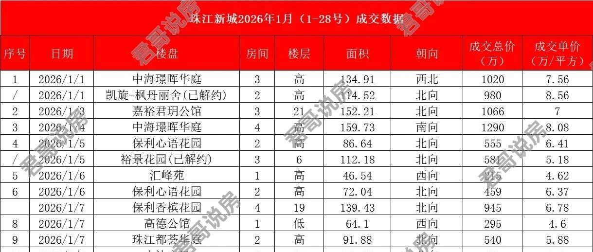 每日更新:珠江新城2026年1月(1-28日)成交数据 君哥说房 · 公众号 · · 1 月前 · |