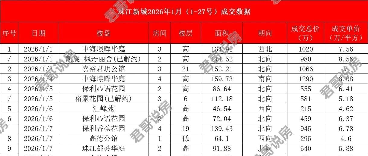 全面回暖,珠江新城2026年1月27日成交数据 君哥说房 · 公众号 · · 1 月前 · |