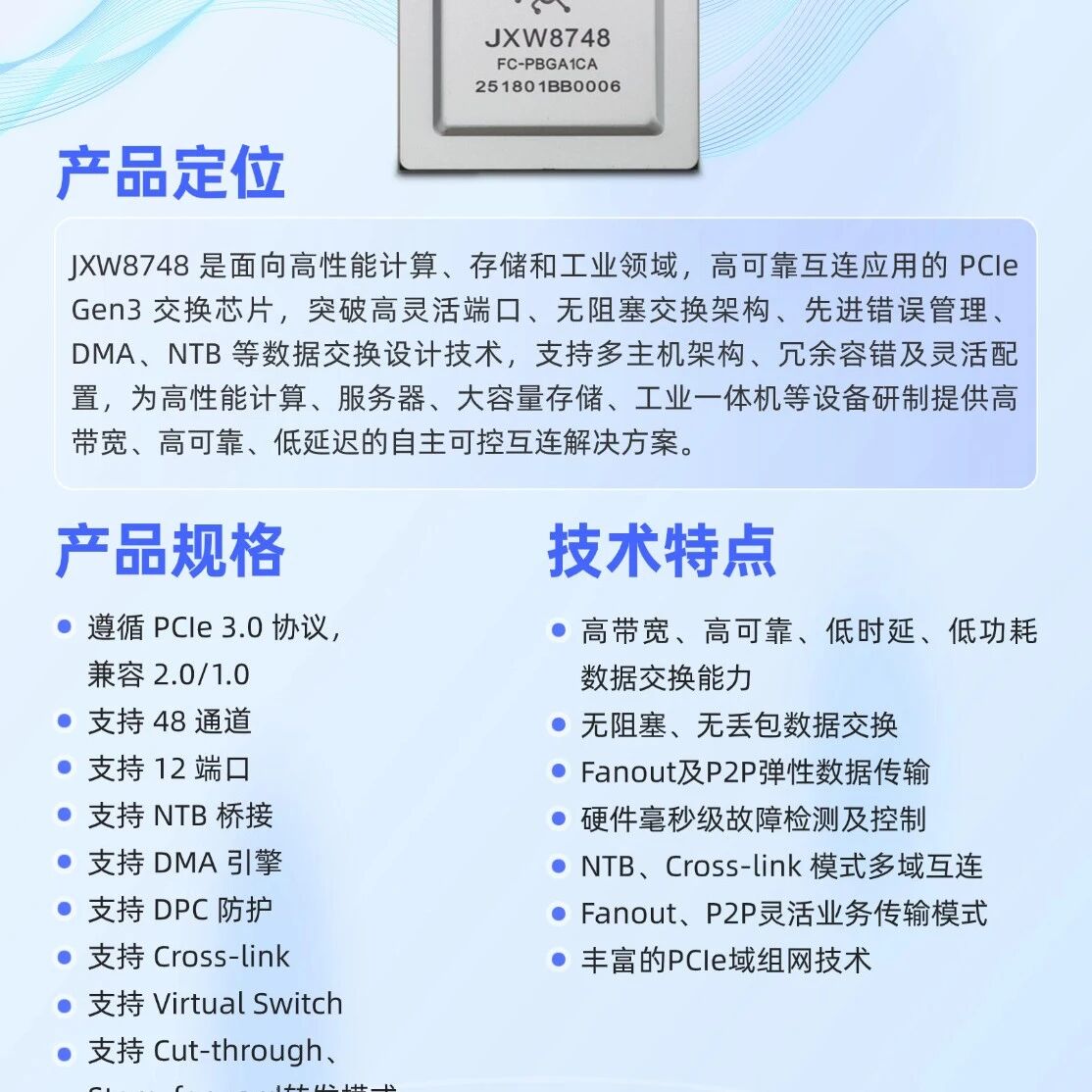 【产品介绍】JXW8748 PCIe 交换芯片