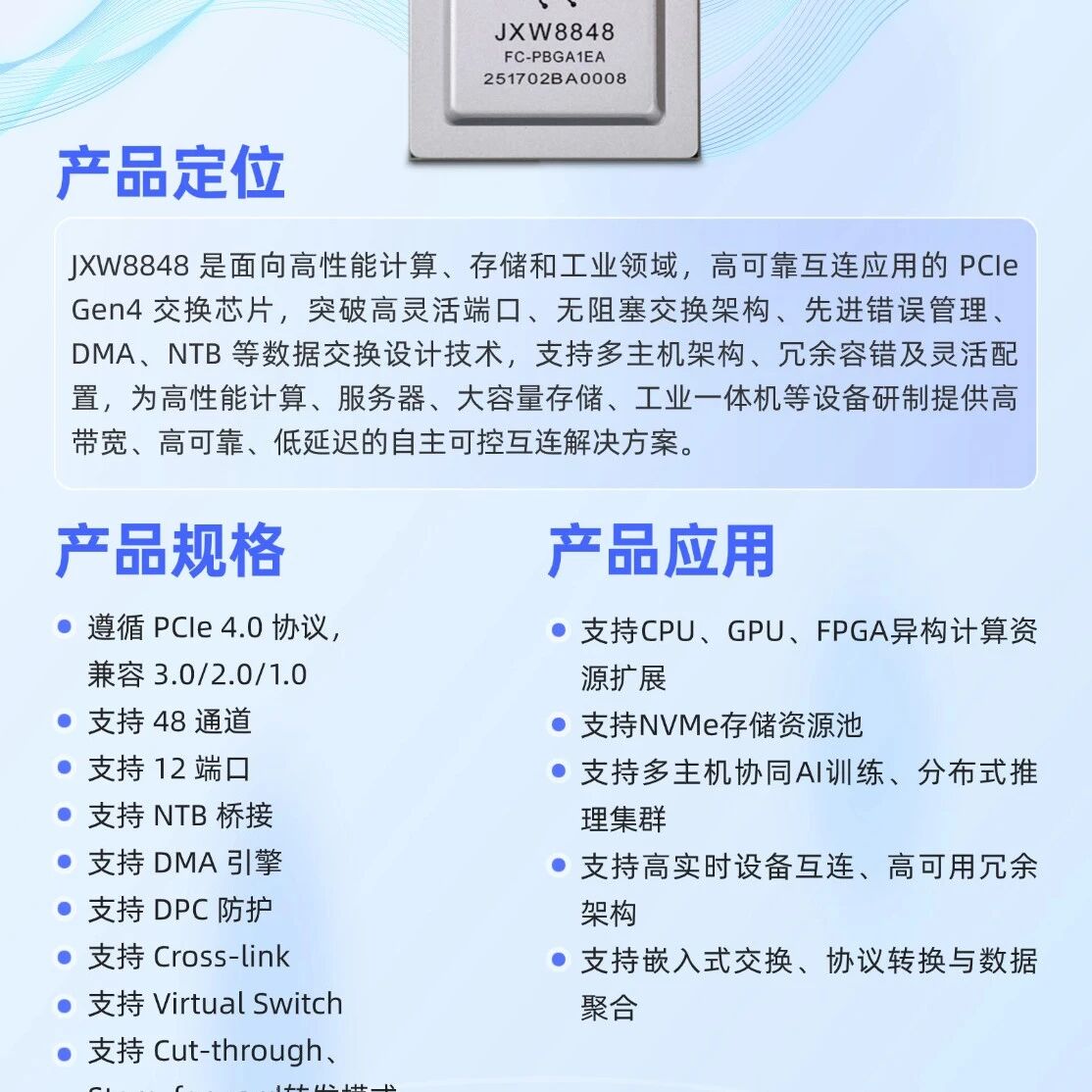 【产品介绍】JXW8848 PCIe 交换芯片