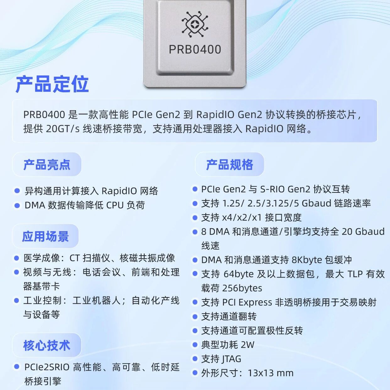 【产品介绍】PCIe转SRIO 桥接芯片 PRB0400