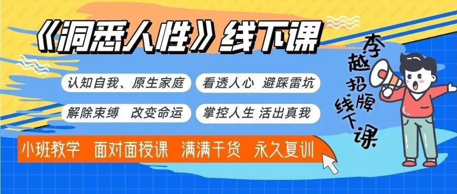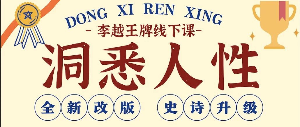 《洞悉人性》李越王牌线下课10.25-26日首次改版线上直播,首期超值优惠,名额有限,报名从速! 李越 · 公众号 · 两性 · 3 月前 · |