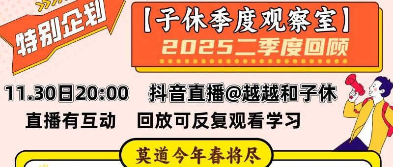 特别企划《子休季度观察室》第二季度本周日晚八点付费直播开讲啦!不要错过早鸟价! 李越 · 公众号 · 两性 · 2 月前 · |