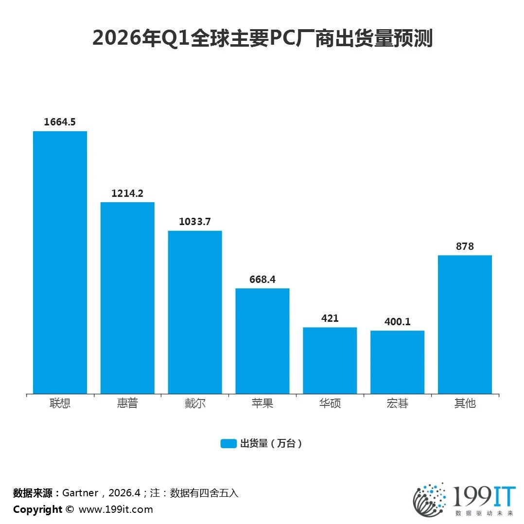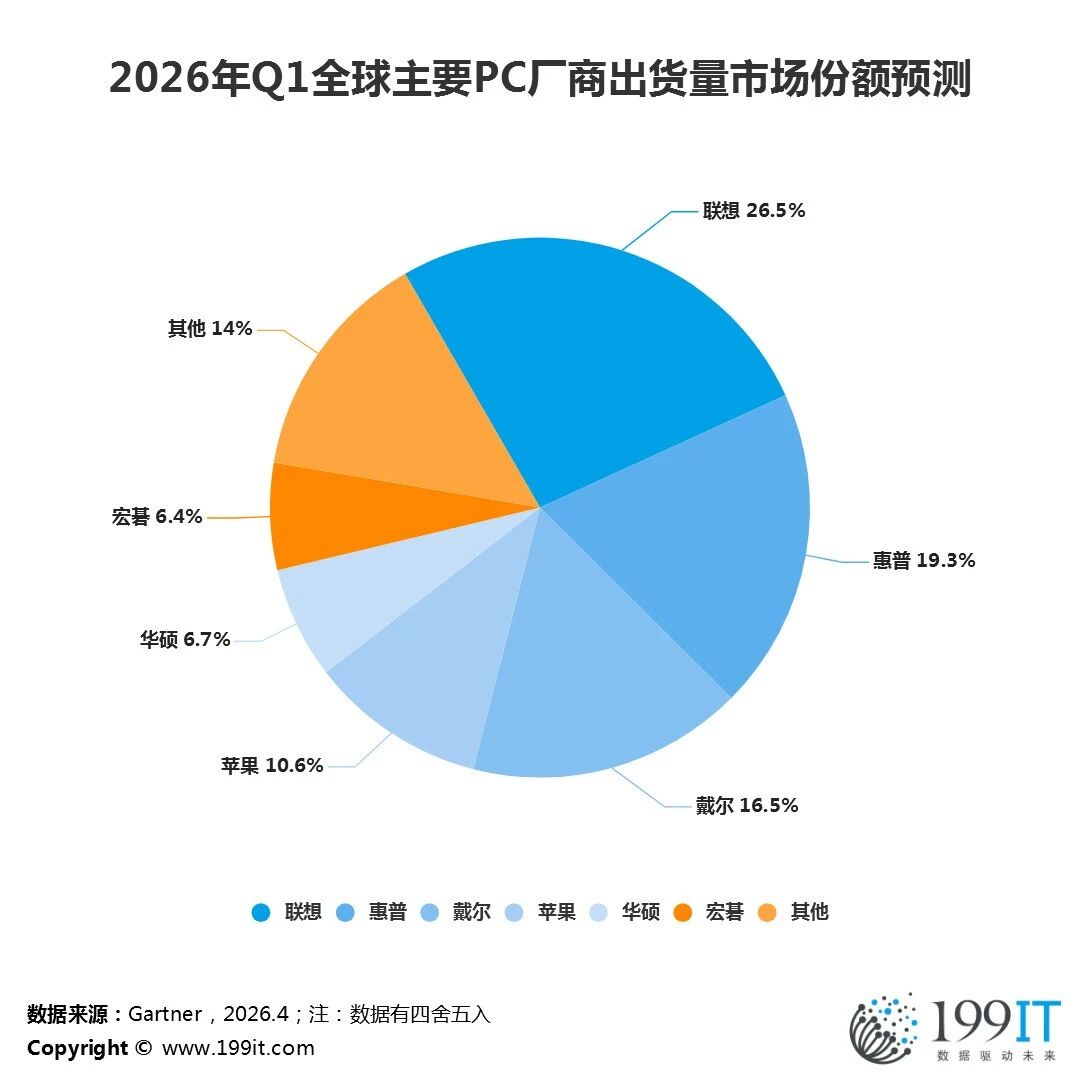 2026年Q1全球主要PC厂商出货量市场份额预测 199IT互联网数据中心 · 公众号 · 科技媒体 · 16 小时前 · |