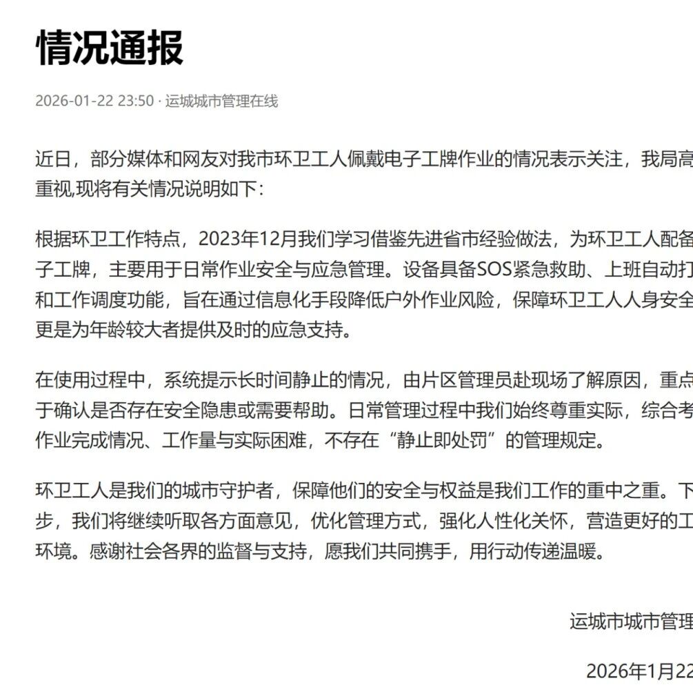 环卫工必须戴定位器工牌?当地通报 广东民生频道 · 公众号 · · 4 天前 · |