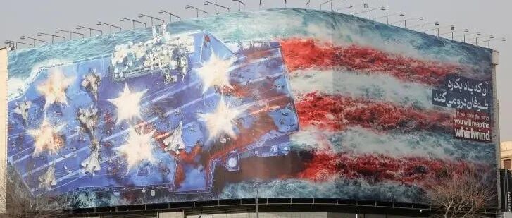 局势骤紧!美军航母就位,伊朗在首都街头立巨幅画暗指航母被炸,配文“煽风者将得到风暴”;哈梅内伊已进入...