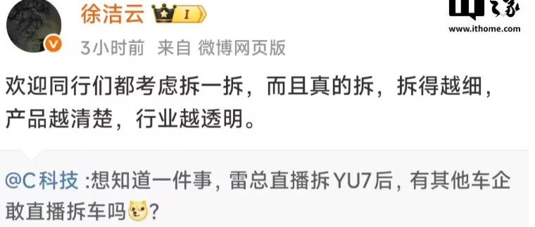 徐洁云谈小米拆车:欢迎同行们都考虑拆一拆,拆得越细,产品越清楚,行业越透明 玩机社TechFun · 公众号 · · 1 周前 · |
