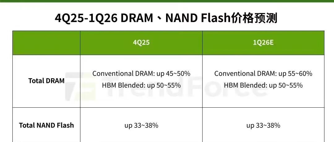 TrendForce:2026Q1一般DRAM合约价环比涨55~60%、NAND涨33~38% 玩机社TechFun · 公众号 · · 1 周前 · |