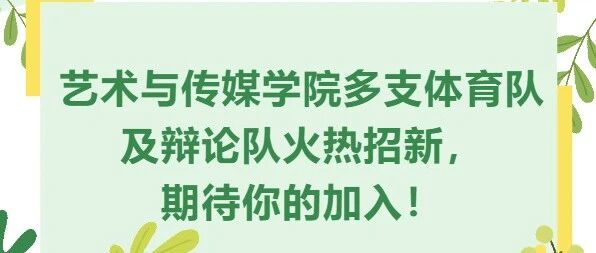 艺术与传媒学院多支体育队及辩论队火热招新,期待你的加入! 北师艺家人 · 公众号 · · 1 月前 · |