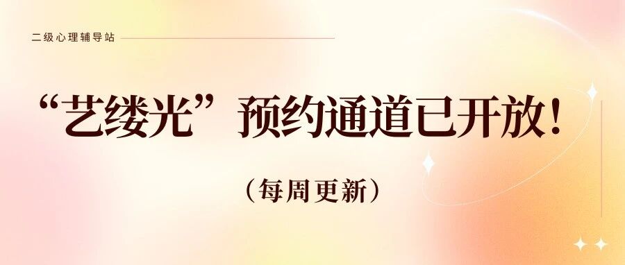 “艺缕光”二级心理辅导站预约通道已开放!(10.27-11.2每周更新) 北师艺家人 · 公众号 · · 1 月前 · |
