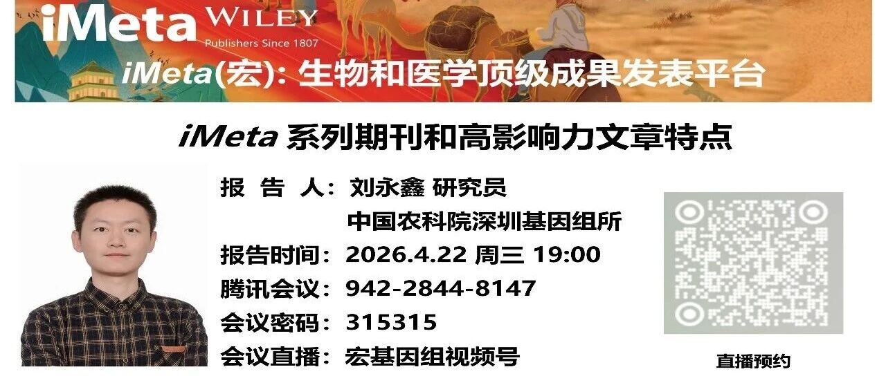 报告 | 刘永鑫-iMeta系列期刊和高影响力文章特点(4.22晚7点) 生信宝典 · 公众号 · 生物 · 5 天前 · |