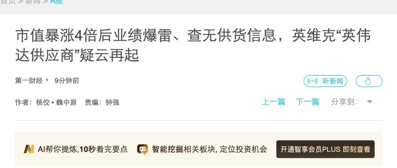 英维克英伟达供应商疑云调查:含糊其辞的信披,查无实据的「直接供应商」身份! 国际投行研究报告 · 公众号 · · 12 小时前 · |
