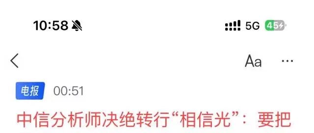 相信光!全网疯传中信消费分析师转行:把最好的自己留给更有未来的方向!中信证券正宗分析师辟谣:无此分析... 国际投行研究报告 · 公众号 · · 21 小时前 · |