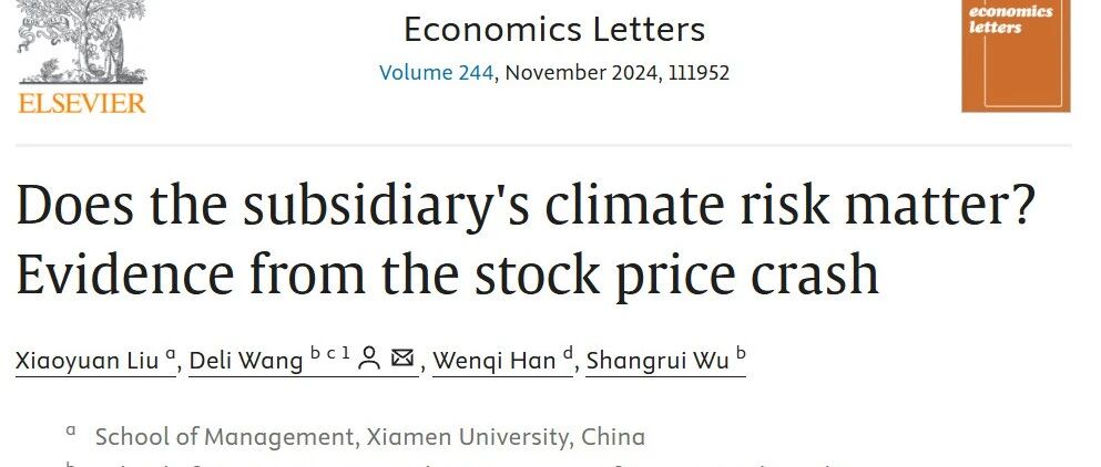 【EL】子公司气候风险会增加母公司的股价崩盘风险 每天一文献 · 公众号 · 金融 · 1 年前 · |