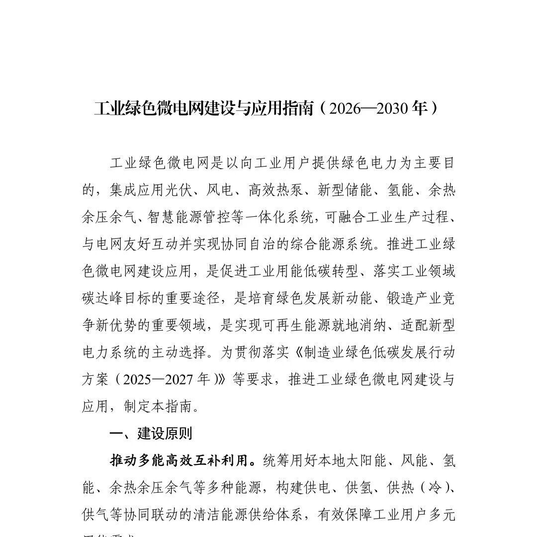 五部门印发《工业绿色微电网建设与应用指南(2026—2030年)》 电能革新 · 公众号 · · 3 天前 · |