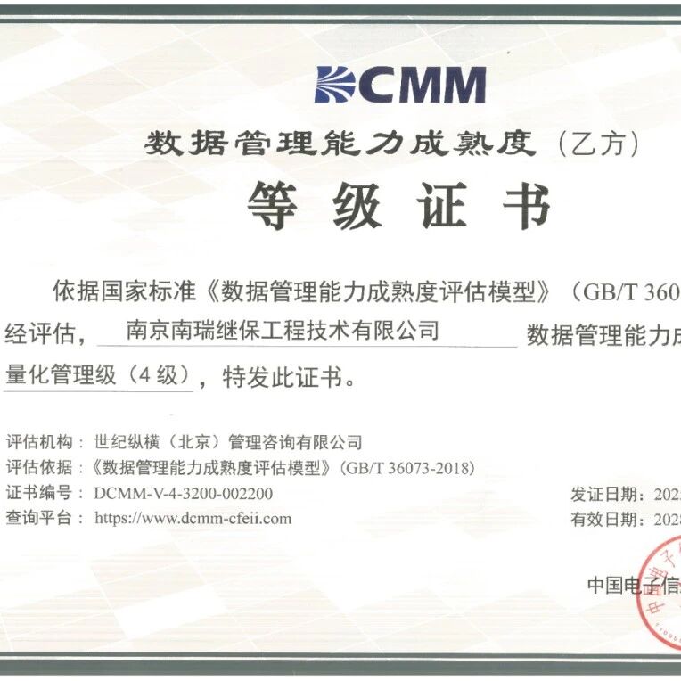 南瑞继保通过DCMM乙方四级量化管理级认证 电能革新 · 公众号 · · 3 天前 · |