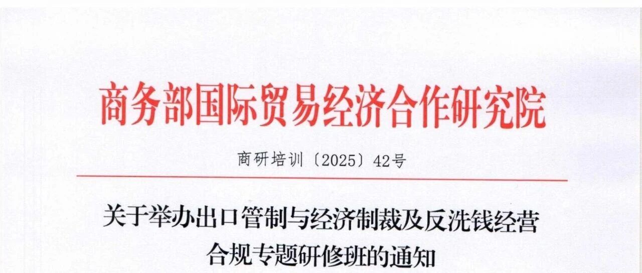 商务部研究院:关于举办出口管制与跨境反洗钱经营合规专题研修班的通知