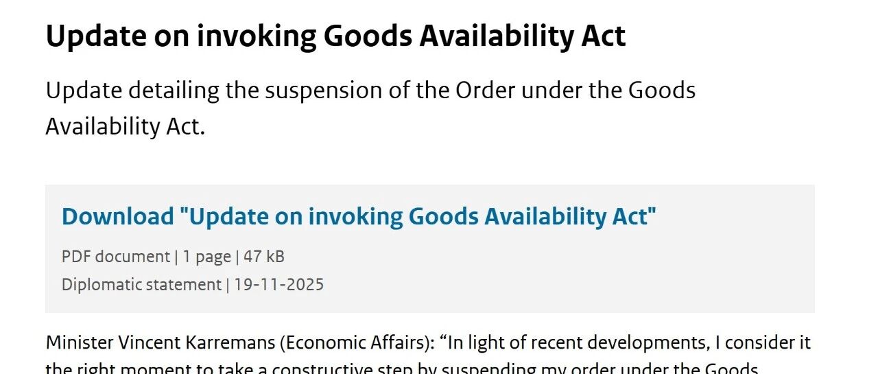 荷兰经济部长宣布暂停实施针对安世半导体的指令