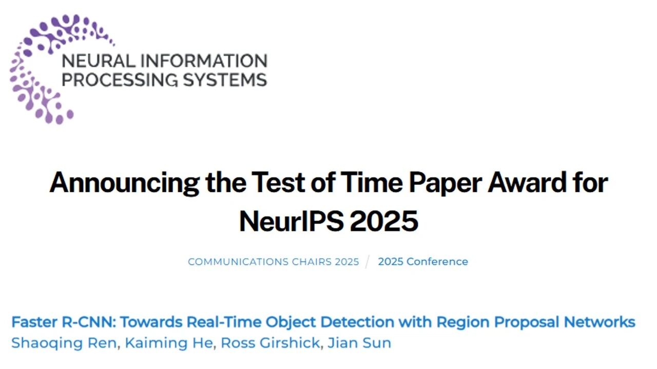 恭喜Faster R-CNN荣获NeurIPS 2025“时间检验奖” 微软亚洲研究院 · 公众号 · AI · 1 月前 · |