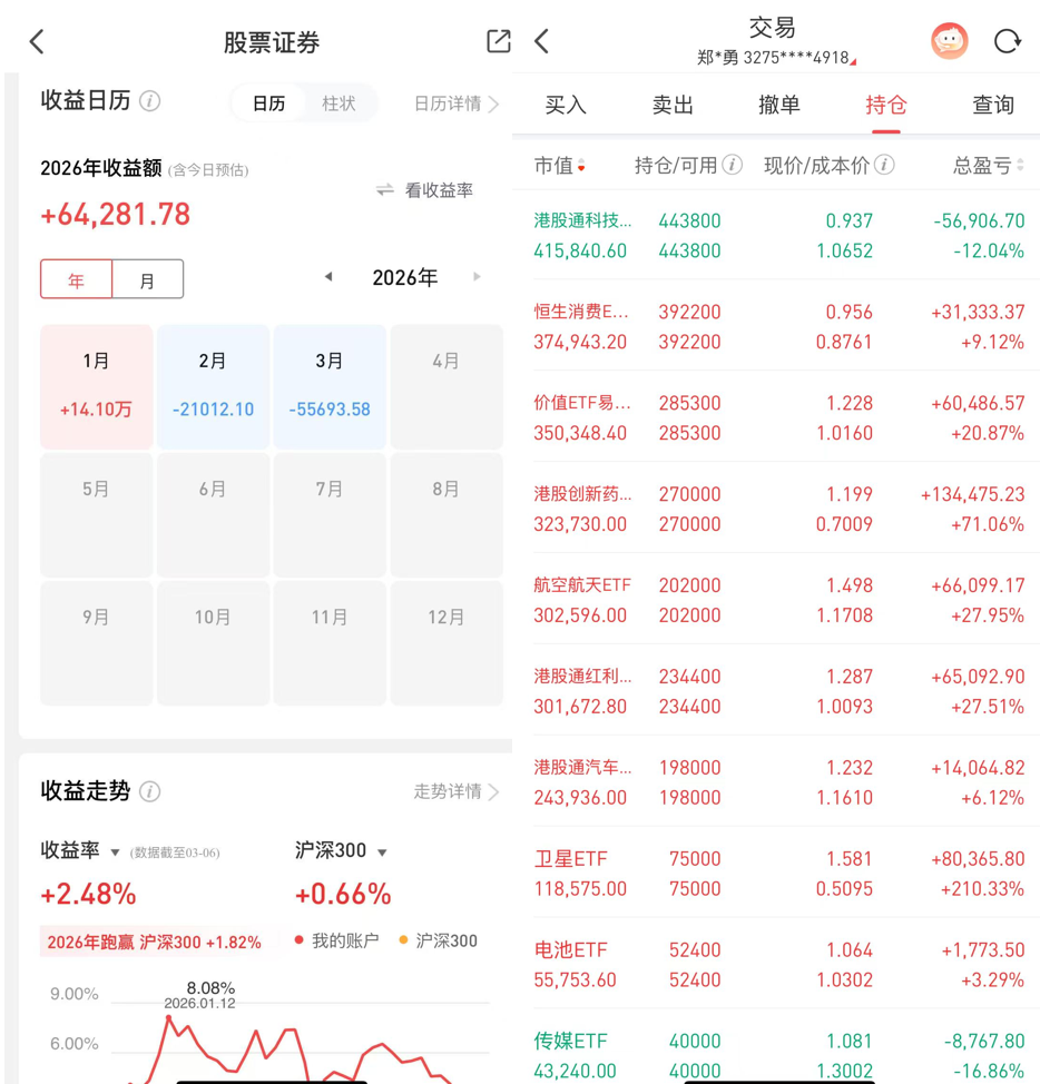 终于回血了,本周依旧巨亏小6万!大家点赞支持,博格持续晒实盘$腾-20260306150300 望京博格 · 雪球动态 · 财经 · 昨天 · |