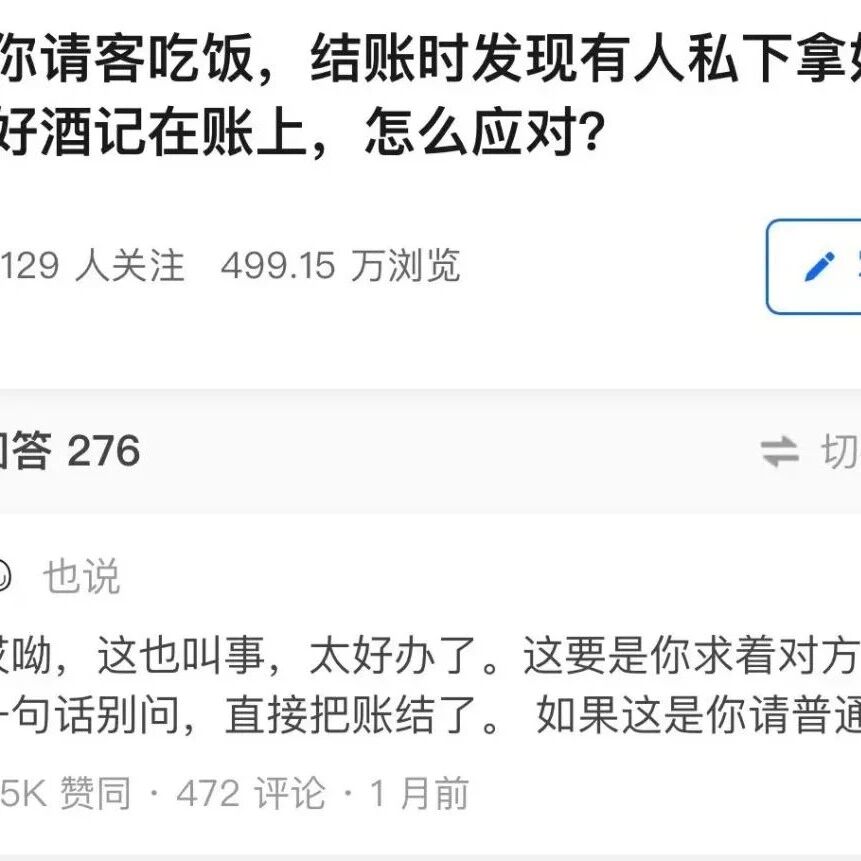 知乎热帖“我请客吃饭,结账却发现有人私下拿好酒记账上”结局太意外