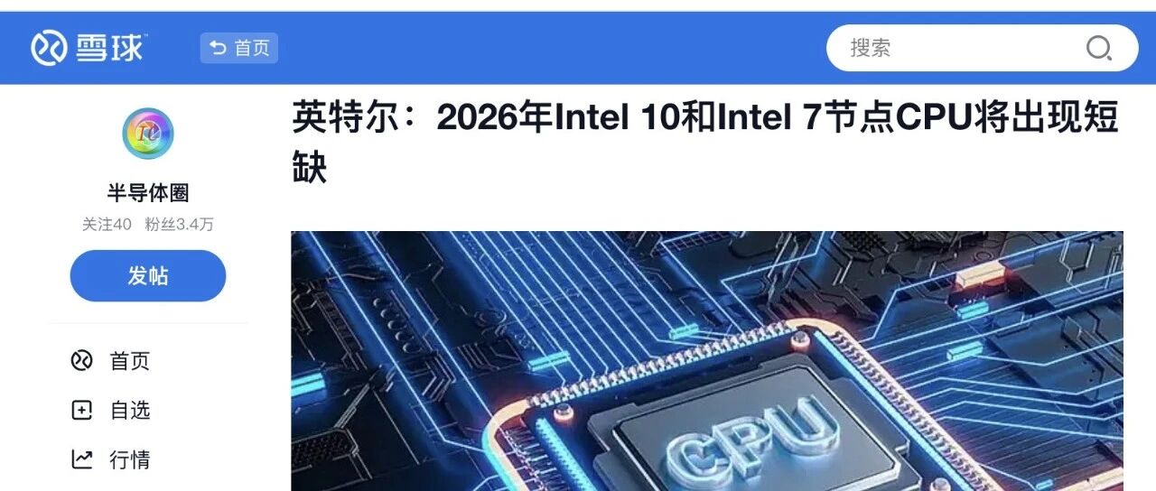 CPU短缺全面爆发!!! 半导体行业联盟 · 公众号 · 半导体 · 2 天前 · |