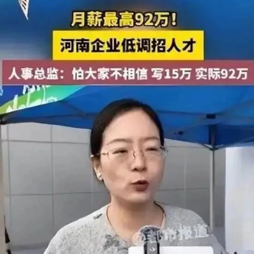 河南一互联网公司月薪92万招销售,人事总监:怕大家不相信招聘写的15万 中国人力资源 · 公众号 · 职场 · 1 周前 · |
