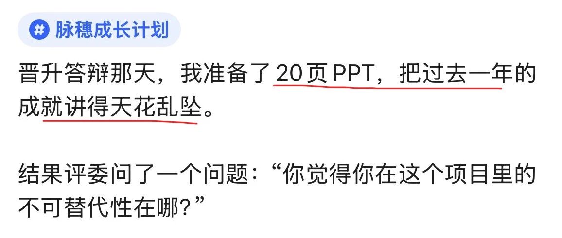 晋升答辩那天,我准备了20页PPT,把过去一年的成就讲得天花乱坠,后来我才发现,晋升名单其实早就在答... 鸭哥聊Java · 公众号 · · 2 周前 · |