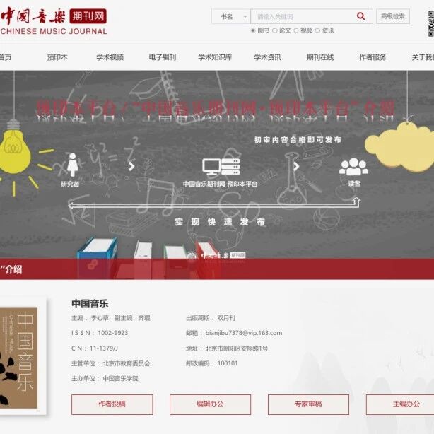 中国音乐期刊网·预印本plus期刊联盟·作者投稿指南及稿件流程公示 中国音乐ChineseMusic · 公众号 · 音乐 · 10 月前 · |
