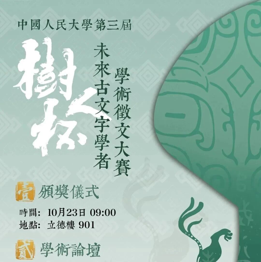 [学闻] 中国人民大学第三届“树人杯”未来古文字学者学术征文大赛系列活动议程 先秦秦汉史 · 公众号 · · 6 天前 · |