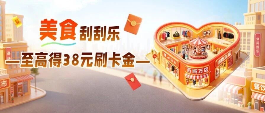 【美食刮刮乐】至高得38元美食刷卡金!