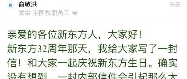 俞敏洪深夜用绿字向员工发致歉信:你在努力工作老板也在拼命努力,并承担更大风险…… 柴狗夫斯基 · 公众号 · · 3 天前 · |