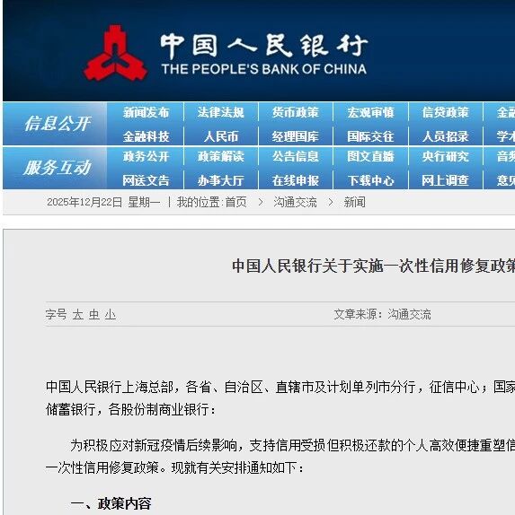 央行发布一次性信用修复政策!附详细政策解读 不良资产行业观研 · 公众号 · · 5 天前 · |