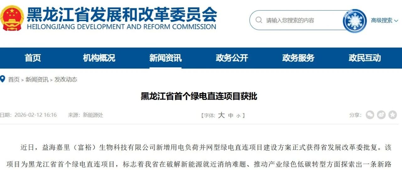 黑龙江首个绿电直连项目获批 储能与电力市场 · 公众号 · · 3 天前 · |