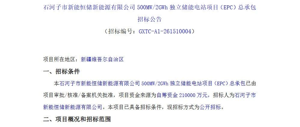 500MW/2GWh,新疆石河子独立储能EPC招标 储能与电力市场 · 公众号 · · 2 天前 · |