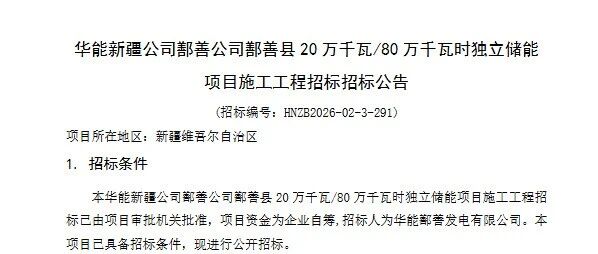 200MW/800MWh,华能新疆独立储能项目施工招标 储能与电力市场 · 公众号 · · 3 天前 · |