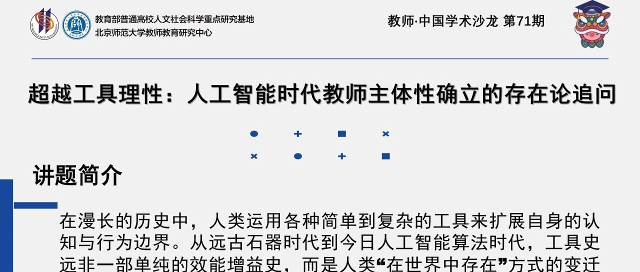 教师·中国 沙龙预告 | 超越工具理性:人工智能时代教师主体性确立的存在论追问 北京师范大学教师教育研究中心 · 公众号 · · 3 周前 · |
