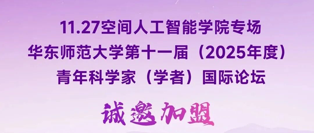 招生招聘丨华东师范大学第十一届(2025年度)青年科学家(学者)国际论坛:空间人工智能学院专场