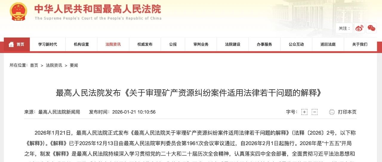 最高人民法院发布《关于审理矿产资源纠纷案件适用法律若干问题的解释》 iPolicyLaw · 公众号 · 法律 · 5 小时前 · |