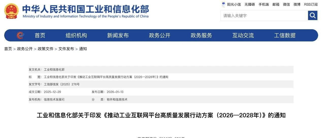 工业和信息化部关于印发《推动工业互联网平台高质量发展行动方案(2026—2028年)》的通知 iPolicyLaw · 公众号 · · 1 周前 · |