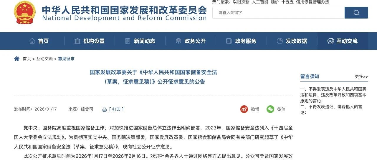 国家发展改革委关于《中华人民共和国国家储备安全法(草案,征求意见稿)》公开征求意见的公告 iPolicyLaw · 公众号 · 政策 · 昨天 · |