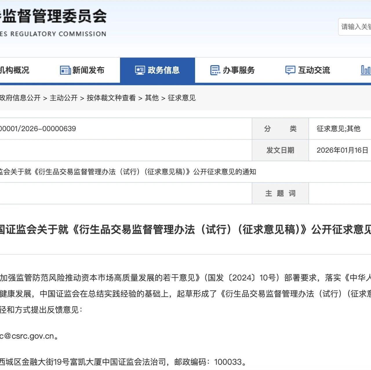 中国证监会就《衍生品交易监督管理办法(试行)(征求意见稿)》公开征求意见 iPolicyLaw · 公众号 · 政策 金融 · 3 天前 · |