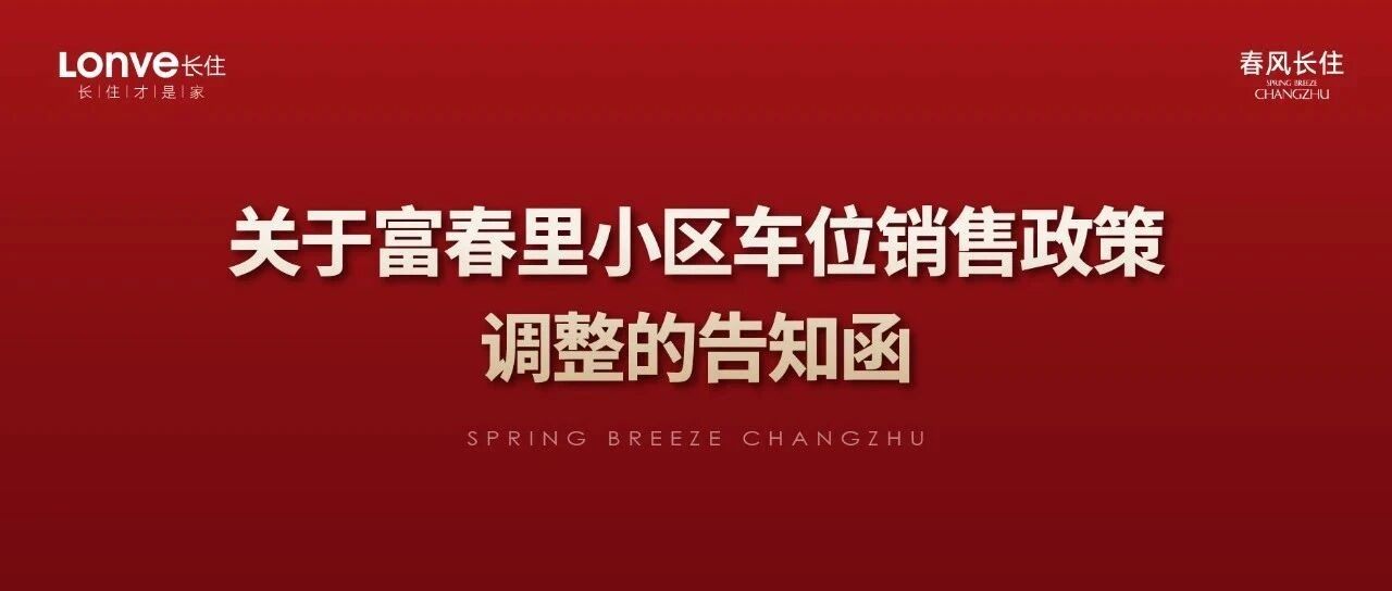 通知 | 湖州春风长住车位销售政策调整
