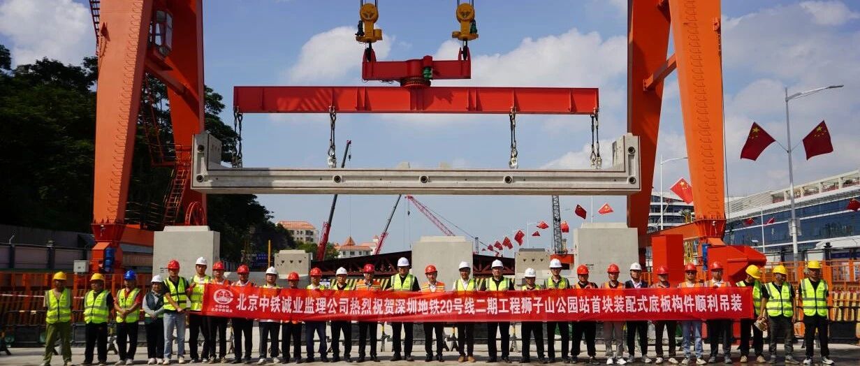 深圳地铁20号线二期工程狮子山公园站首块装配式底板构件顺利吊装