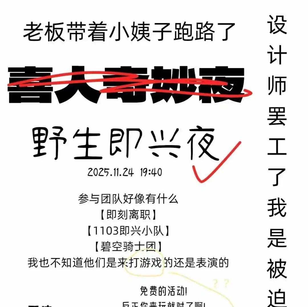 周一晚|野生即兴夜 EP2 邀请函! 一种可能Possibility · 公众号 · · 2 周前 · |