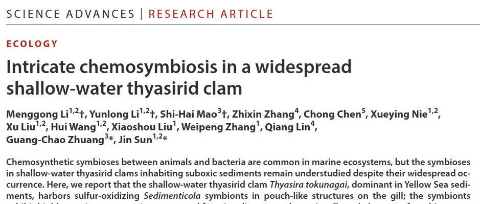SA:浅海广布种索足蛤中复杂的化能共生机制 Marine Sedimentology · 公众号 · · 3 天前 · |