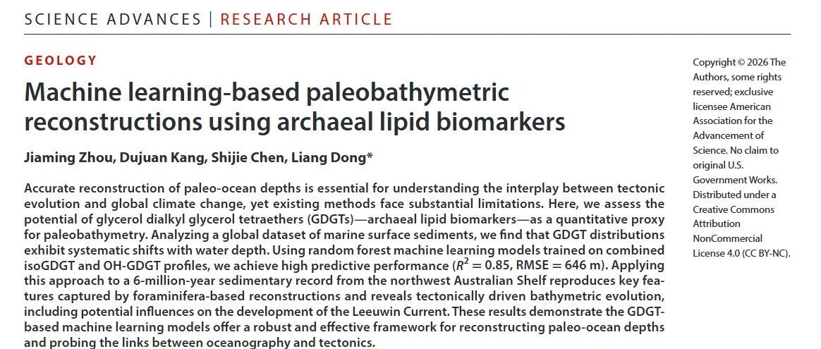 SA:基于机器学习的古菌脂类生物标志物古水深重建 Marine Sedimentology · 公众号 · · 1 周前 · |