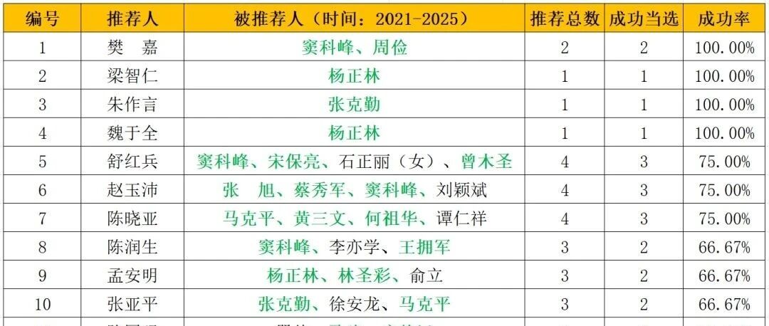 提名中国科学院院士当选成功率最高的推荐人
