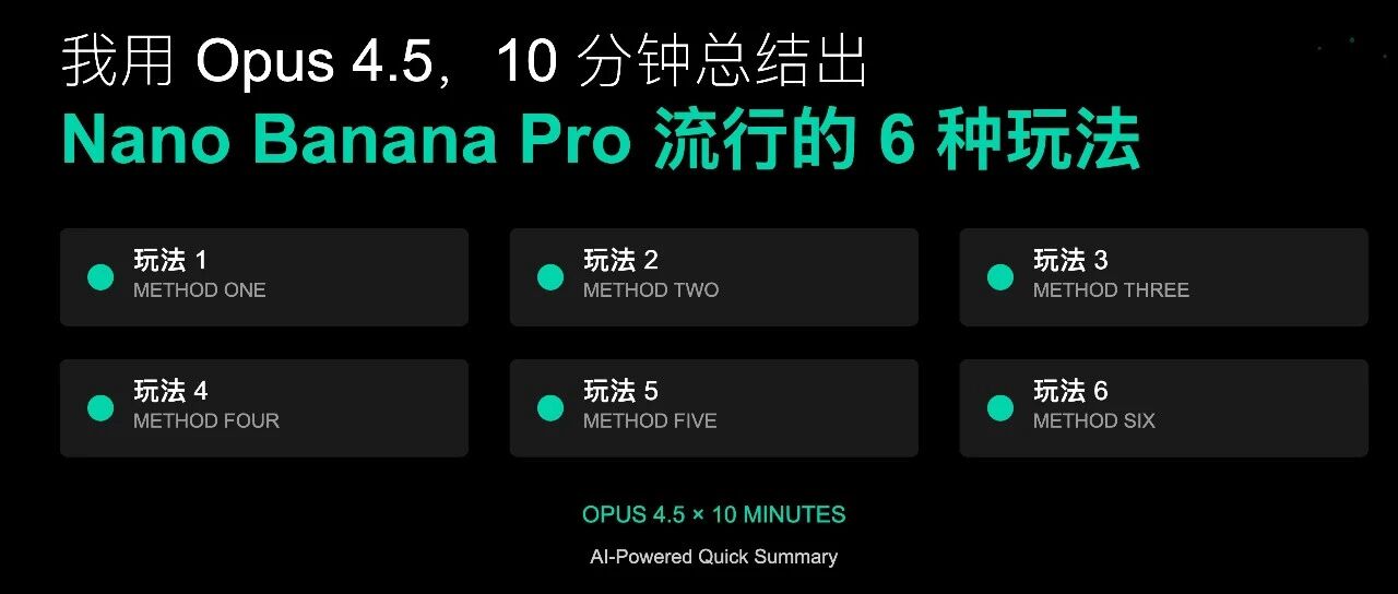 我用 Opus 4.5,10 分钟总结出 Nano Banana Pro 流行的 6 种玩法 纵所周知101 · 公众号 · · 3 天前 · |