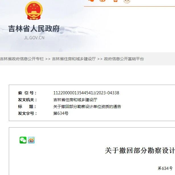 吉林省住建厅通报:2家水利丙级设计院因无力整改被撤销资质!